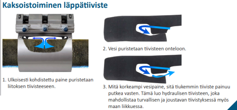 - Hydraulinen tiivistyminen syntyy putken sisäisen vesipaineen vaikutuksesta.