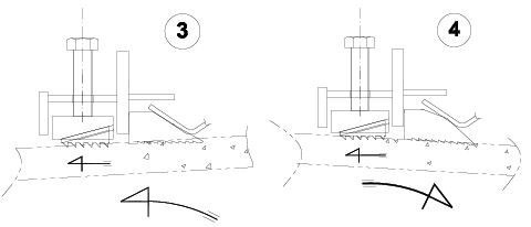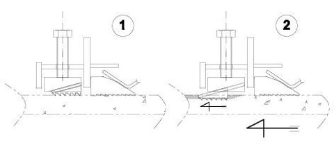 Gripblecken justerar sig själva individuellt i alla riktningar beroende av kraft och markrörelser och greppar hårdare kring röret ju mer påfrestningar det utsätts för.