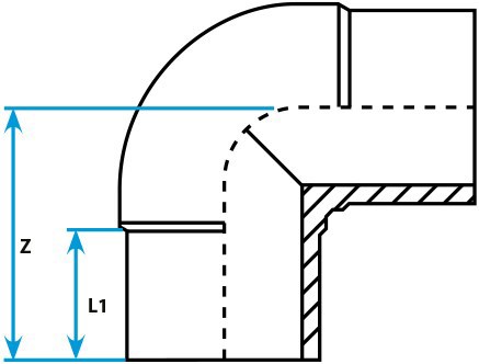 IBECO pitkä 90° kulma sähköhitsausmuhviin tai hitsattuun liitosputkeen
