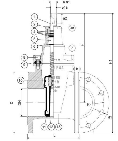 Suunniteltu standardien EN 1074 osa 1 ja 2 sekä EN 1171 mukaisesti Laipat standardin EN 1092-2 PN10/16 mukaisesti Rakennepituus standardin EN 558 F4 mukaisesti