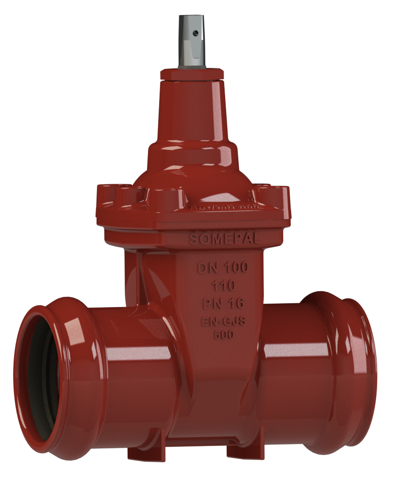Fucoli-Somepal linjaventtiili. Muhvilla ja PVC-putkiliitännöillä; vapaa virtaus.