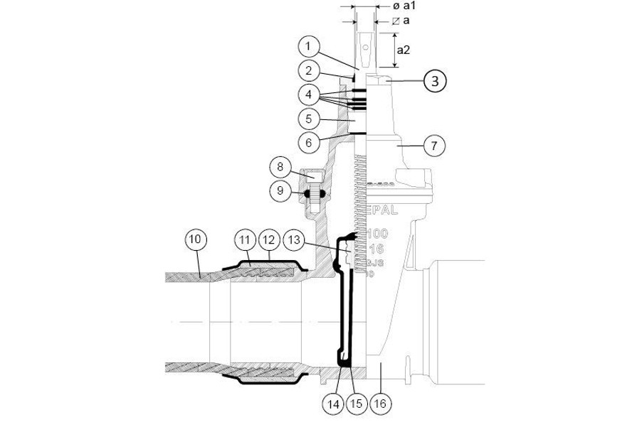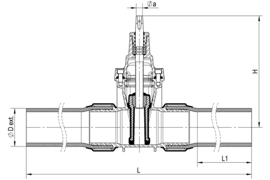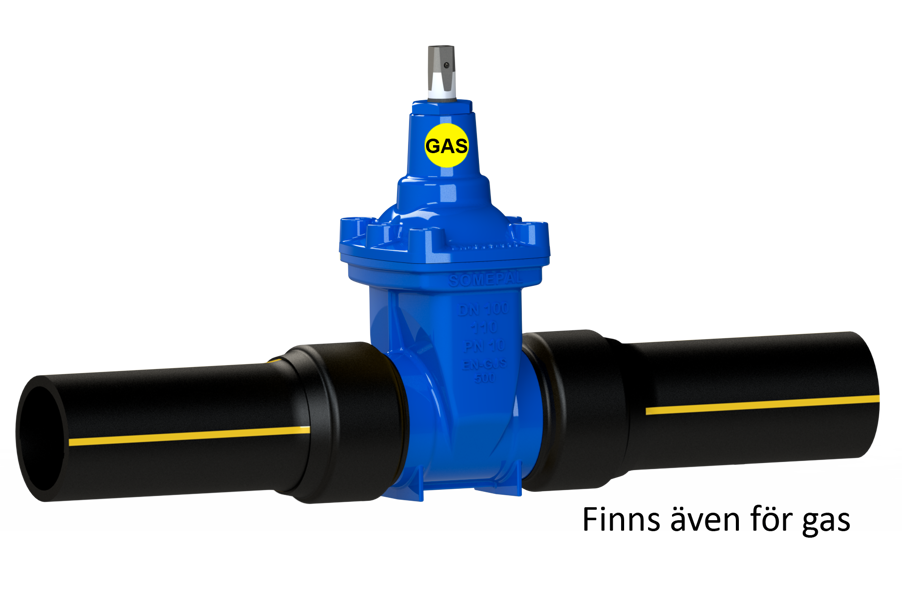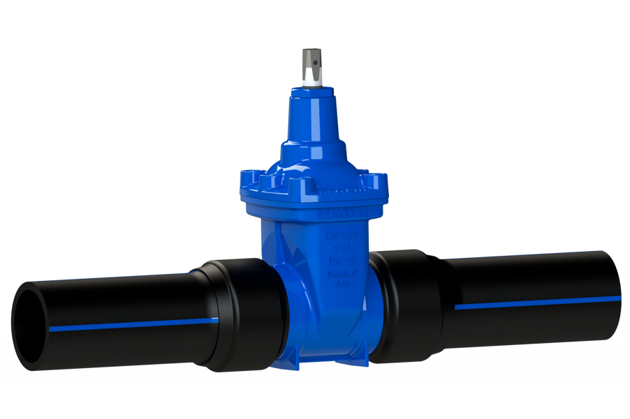 Pehmeätiivisteinen linjaventtiili vesi-, viemäri- ja kaasujärjestelmiin. PE-päät, PE100, PN16, SDR11; vapaa virtaus.