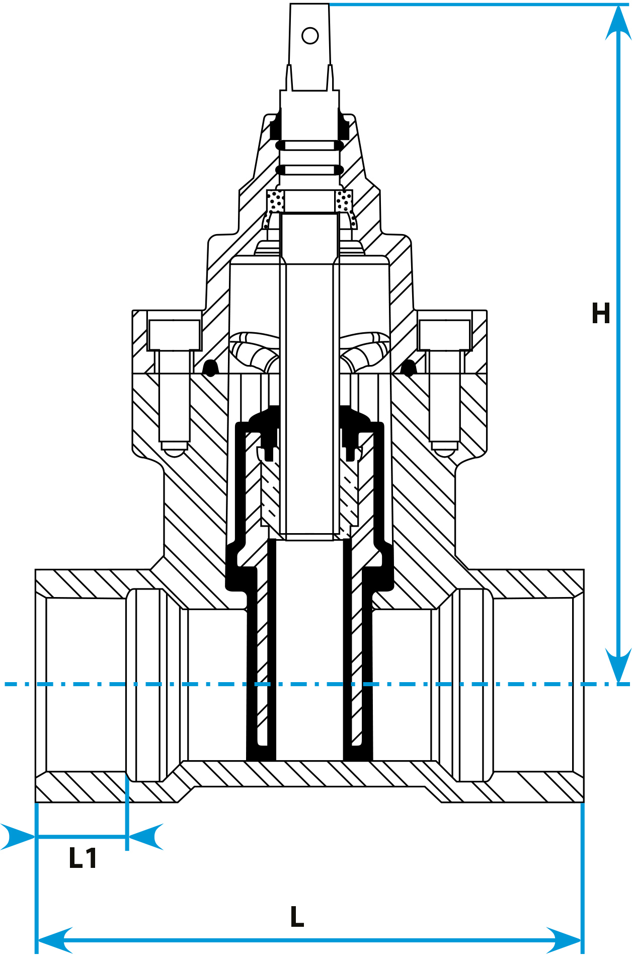 - Täysin vulkanisoitu venttiili kiinteällä kierretangolla sinkkikovetetusta CW617N-messingistä (hyväksytty UBA-listalla)