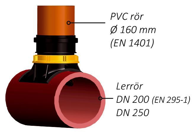 Sadelgrenrör för anslutning till betong och lerrör.