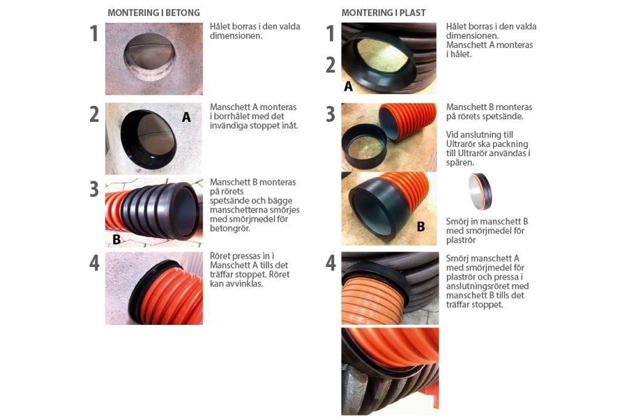 IBECO Rip Seal anborrningsmanschett används för anslutning av korrugerade eller släta plaströr på betongrör och brunnar.