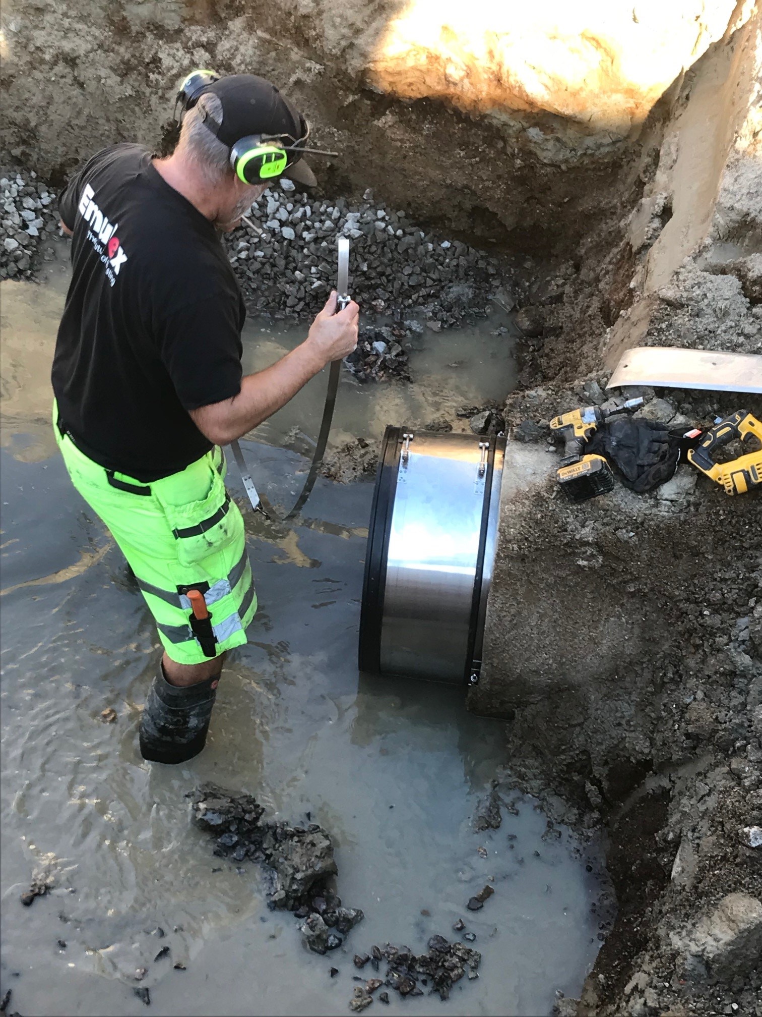 Sammankopplar alla rörmaterial invändigt. Exempel på övergång kan t.ex vara fotrör betong till plast eller betongrör. Kan användas tillsammans med Fernco-kopplingar.