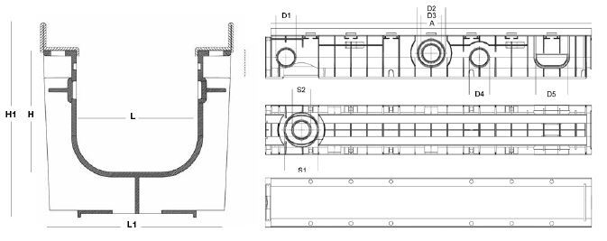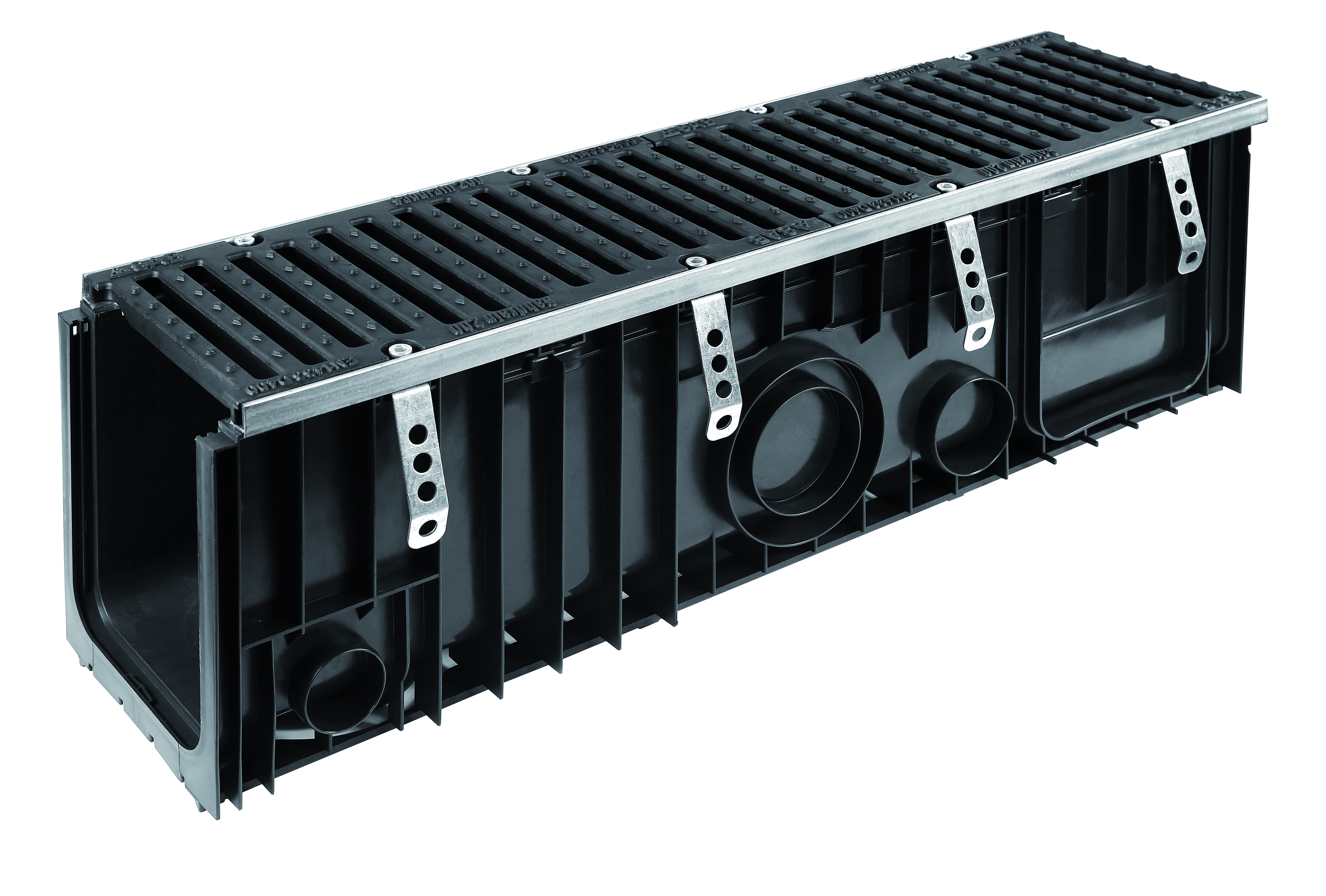 Ränna i PP med stålkant, galler segjärn. Belastningsklass C250