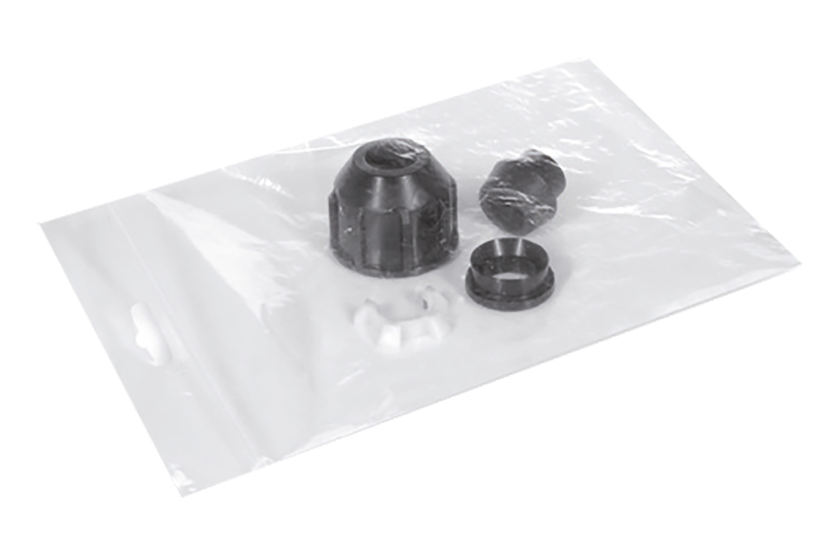 - Material: Koppling, mutter, distansring: PP Tätning: NBR, Gripring: POM