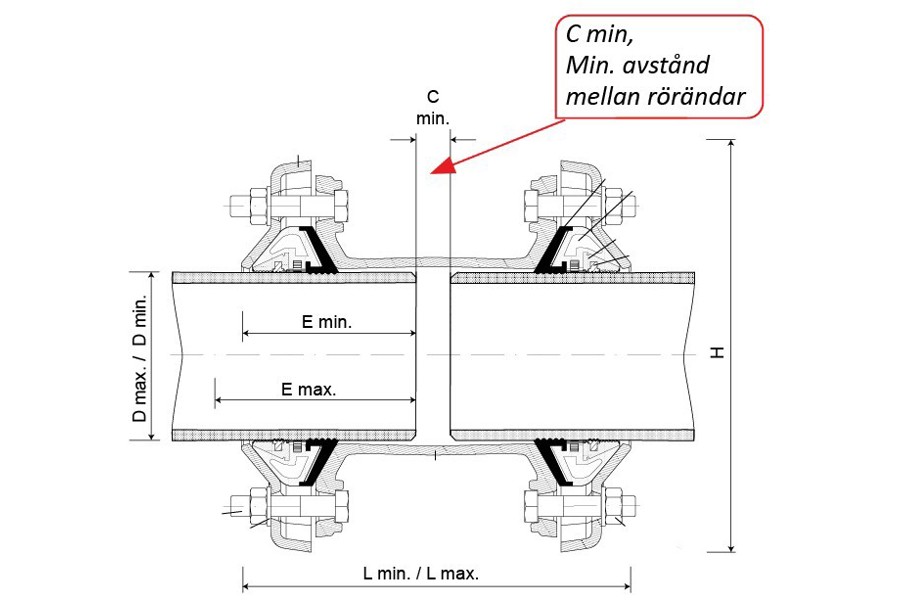 - Vid montage - observera min. avstånd mellan rörändar (Cmin), se skiss
