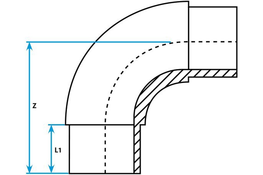 IBECO långa 90° PE böjar för elsvetsmuff eller stumsvets.