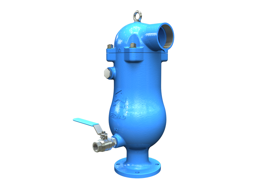 BERMAD C80 är en högkvalitativ dubbelverkande luftventil för avloppsvatten och råvatten. Den evakuerar stora mängder luft under fyllning av rörledningar, möjliggör effektiv avluftning av trycksatta rörsytem, och möjliggör stort luftintag vid dränering av systemet. Med den avancerade aerodynamiska designen ger denna dubbelverkande luftventil utmärkt skydd mot luftansamling och förhindrar vakuumbildning, med förbättrad tätning under lågtrycksförhållanden.Kan levereras med serviceport som tillåter enkel funktionskontroll eller montering av t.ex manometer. Levereras som standard utan serviceport.