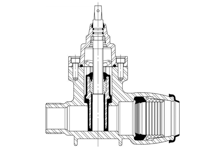 Servisventil PN16. Direktinstick för PE och utvändig gänga; fritt genomlopp