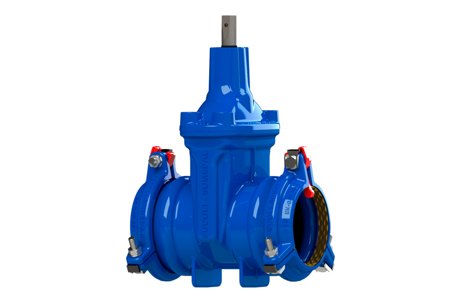 Mjuktätande slussventil med BLOCKPLUS med dragfasta muffar för PE och PVC-rör. Fritt genomlopp.