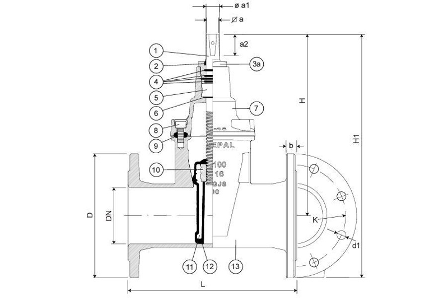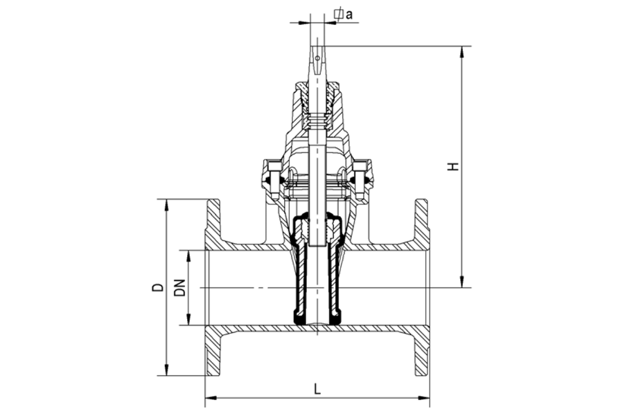 Fucoli-Somepal slussventil. Med fläns; lång bygglängd F5; fritt genomlopp.