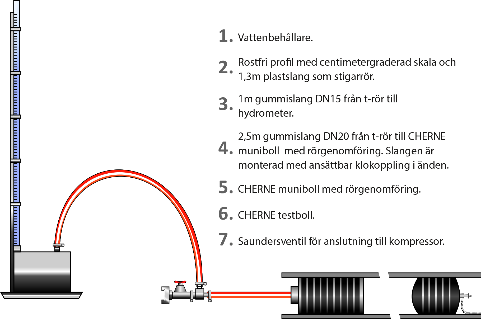 Hydrometern levereras komplett med anslutningsslangar, avstängningsventil och klokopplingar.
