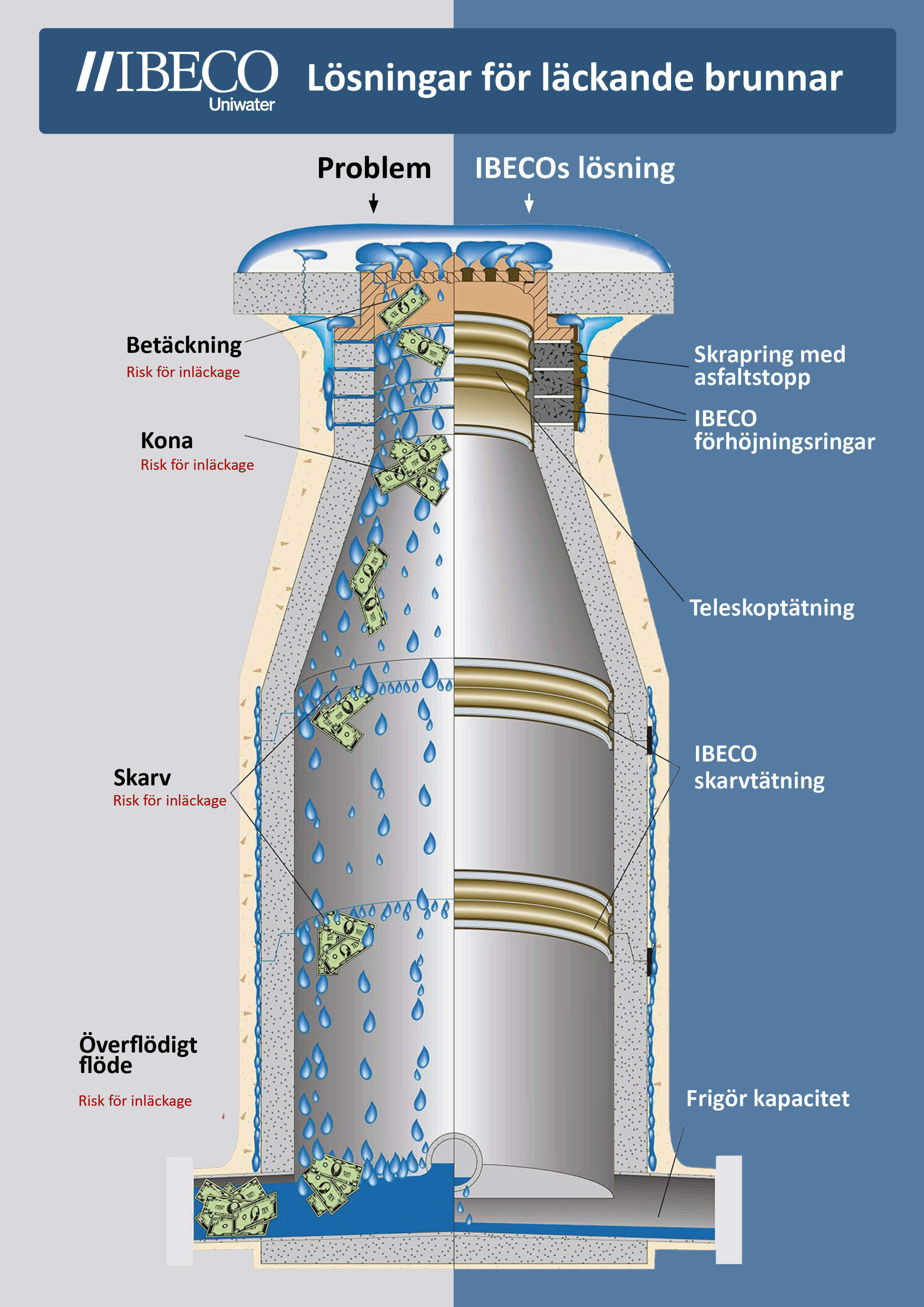 IBECOn teleskooppitiiviste estää pohjaveden tunkeutumisen esimerkiksi nostorenkaan, kannen ja kaivonrenkaiden väliin. Sen jousirakenteen ja teleskooppitehon ansiosta yksi tuote voidaan käyttää monenlaisissa erilaisissa kaivoissa.