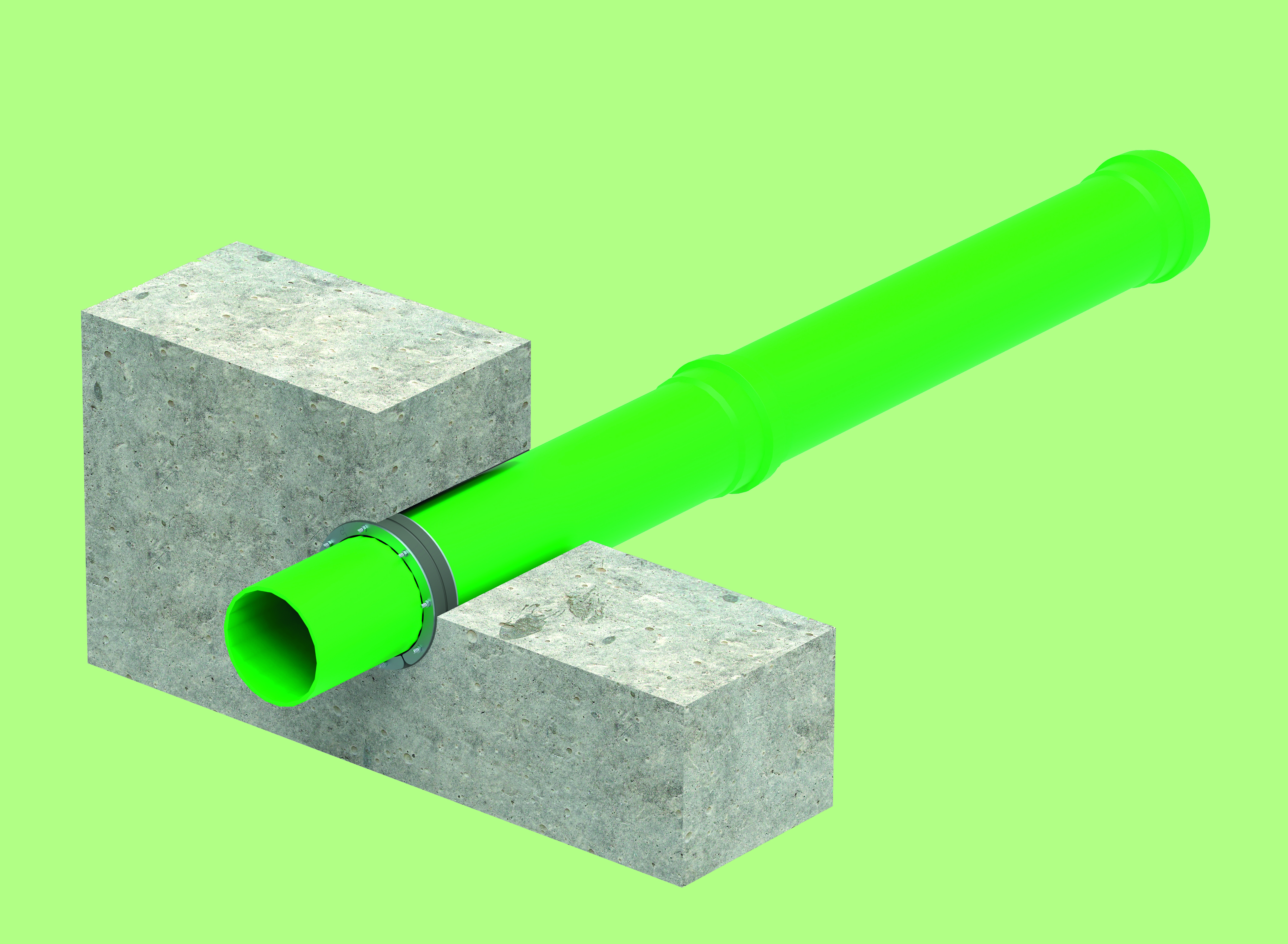 Läpiviennin kumitiiviste toimii tiivisteenä putken ja betonin välillä. Painelevyt ovat ruostumattomasta teräksestä valmistettuja ja niissä on lisäksi pehmeää kumia. Kaasu- ja vesitiivis tiivistys. Tiivisteessä käytetään yhtä 40 mm paksua kumielementtiä (tai vaihtoehtoisesti kahta), jotka puristetaan yhteen kahden ruostumattomasta teräksestä valmistetun painelevyn väliin.