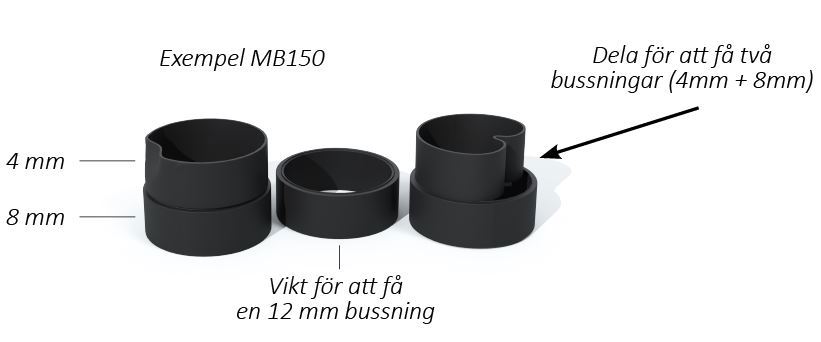 - Tre bussningsstorlekar i en produkt