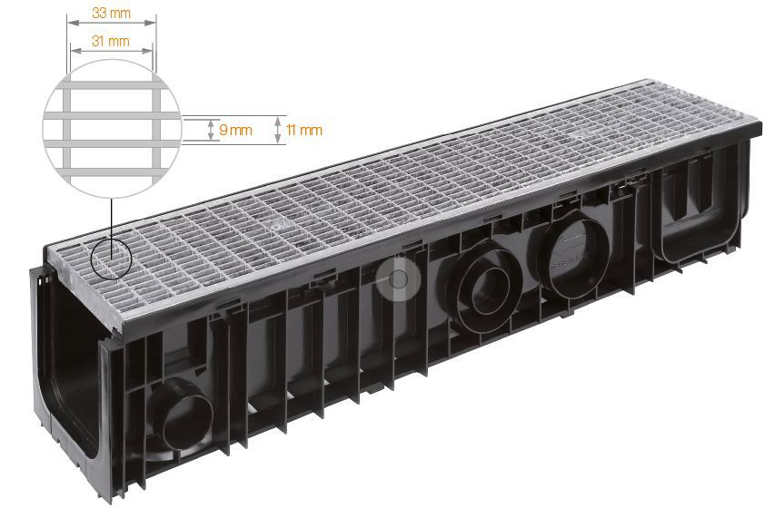 Kouru PP, PP-kantit, verkkoritilä galvonoituteräs, teräskiinnitys Kuormitusluokka B125