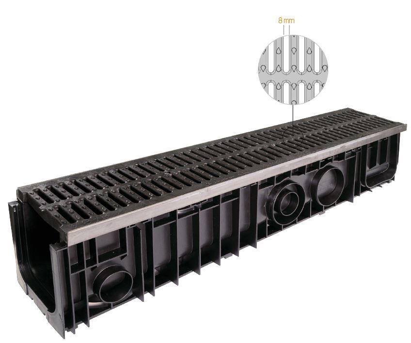 Kouru PP, teräskantit, ritilä PAGF. Kuormitusluokka C250